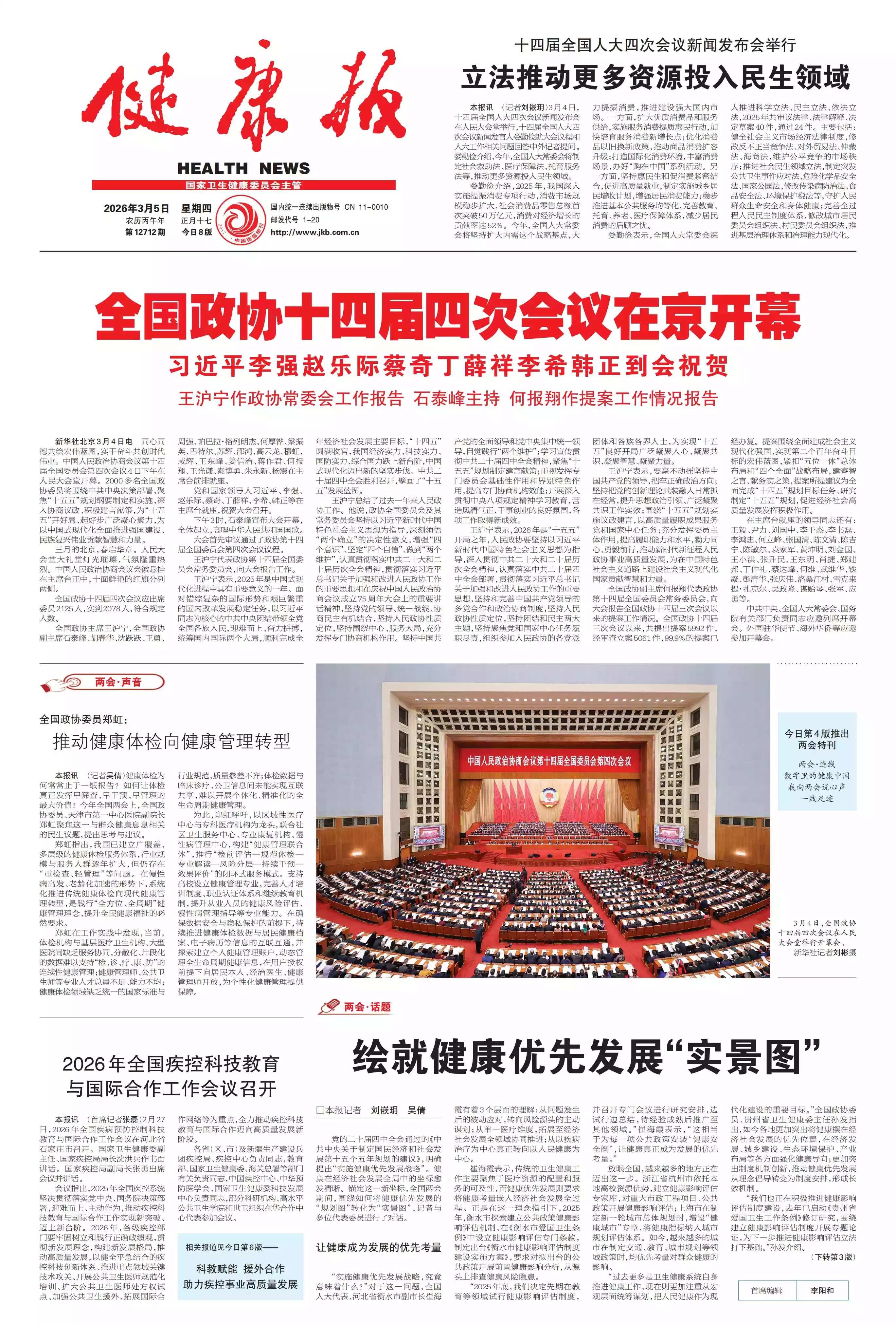 今日第4版推出两会特刊 两会·连线 数字里的健康中国 我向两会说心声 ...