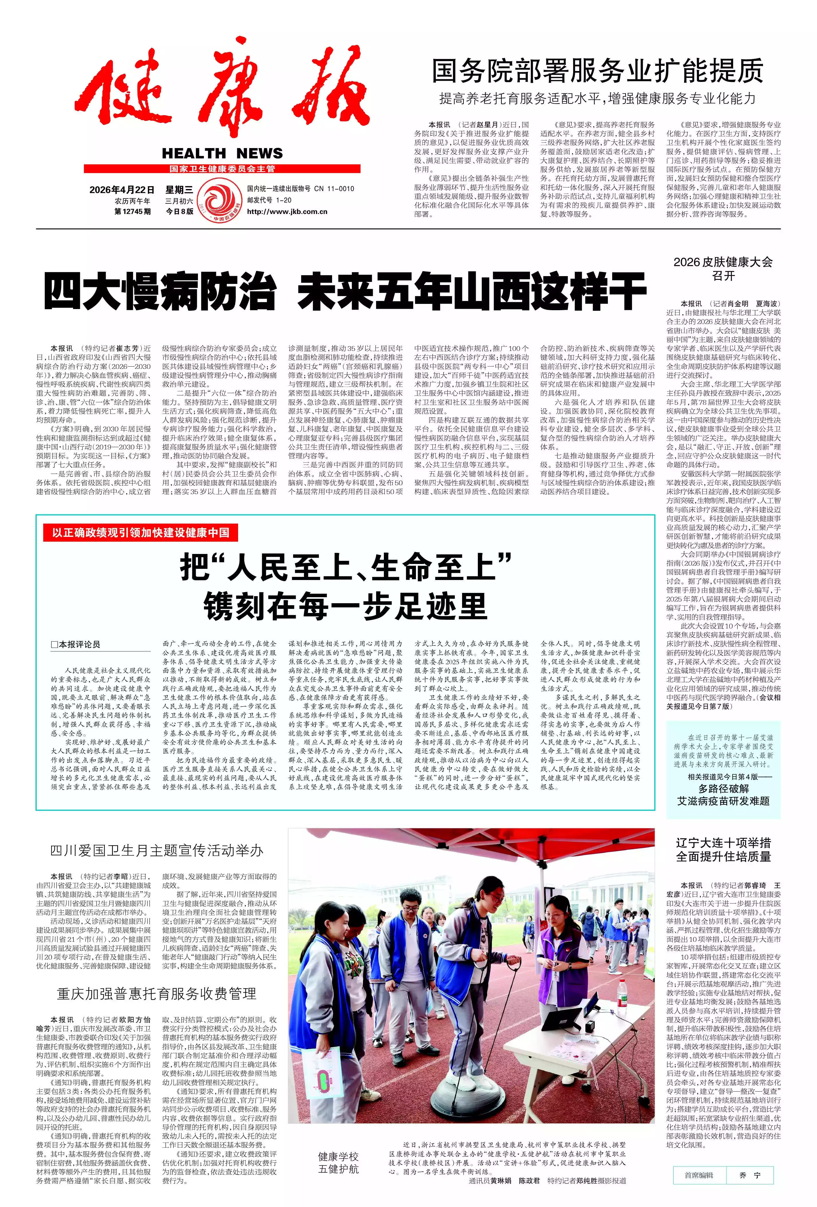 《健康报》是国家卫生健康委员会主管的最具影响的全国性卫生行业报。1931年,在江西瑞金创刊,1956年,由周恩来总理亲题报头。 我们的办报方针-- 立足行业 面向社会 服务大众 我们的报道理念-- 主流视角 权威声音 科学态度 人文情怀 我们的愿景-- 传承红色历史 引领健康未来 构建最具权威性和影响力的健康传播和服务平台