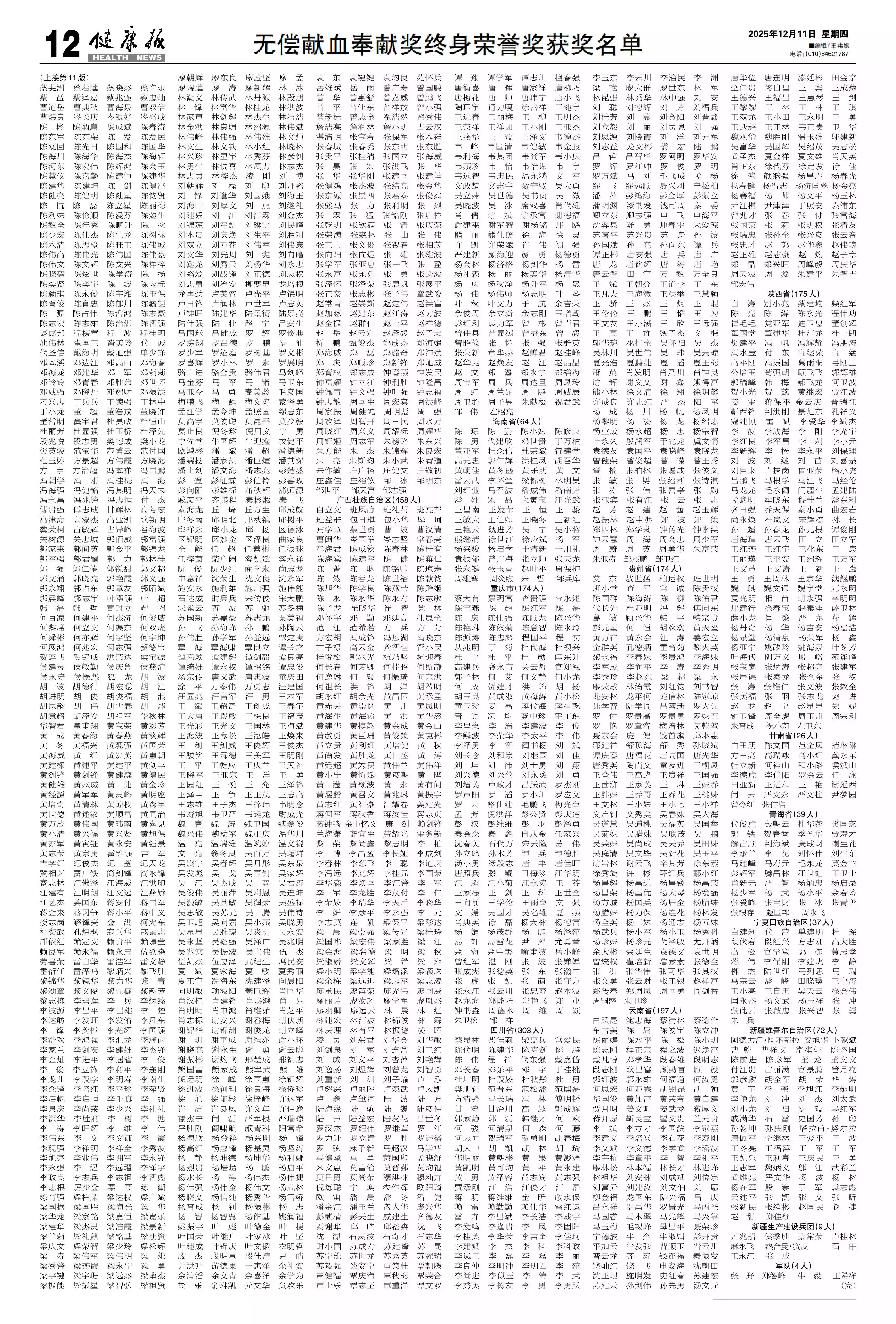 无偿献血奉献奖终身荣誉奖获奖名单(五) (6 图)