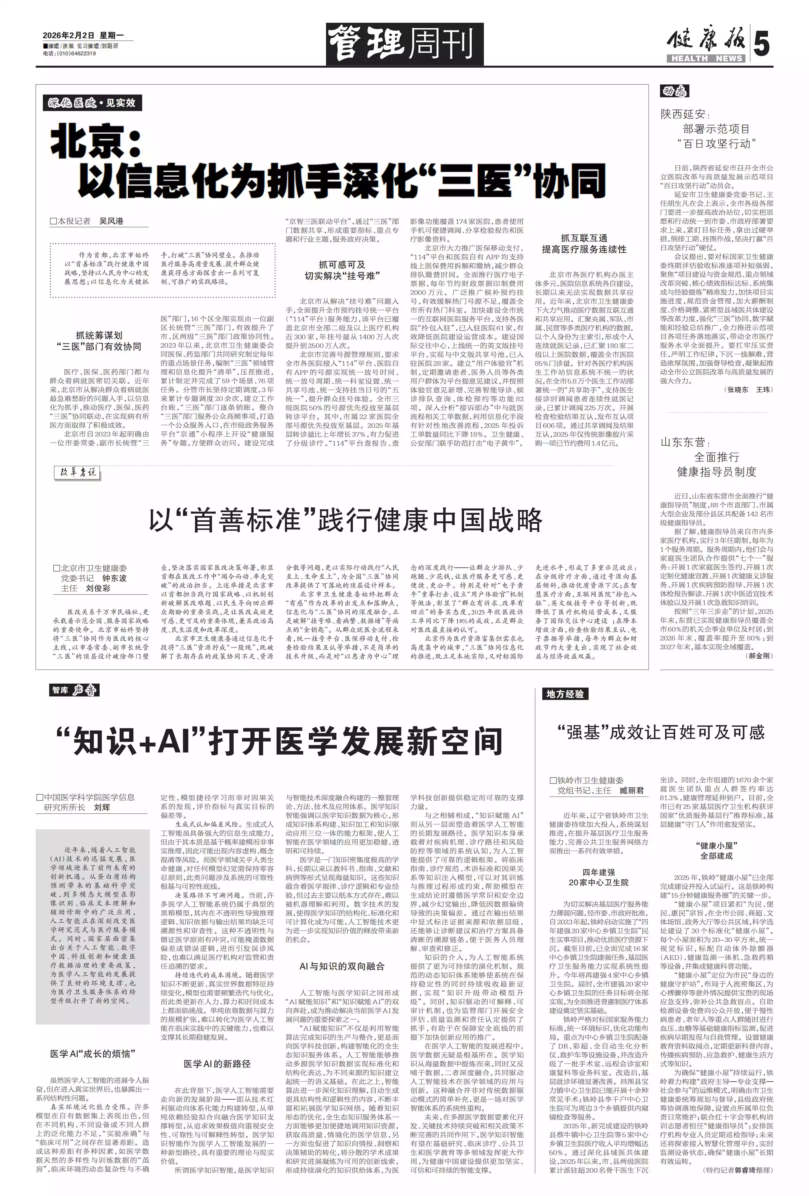 北京:以信息化为抓手深化“三医”协同