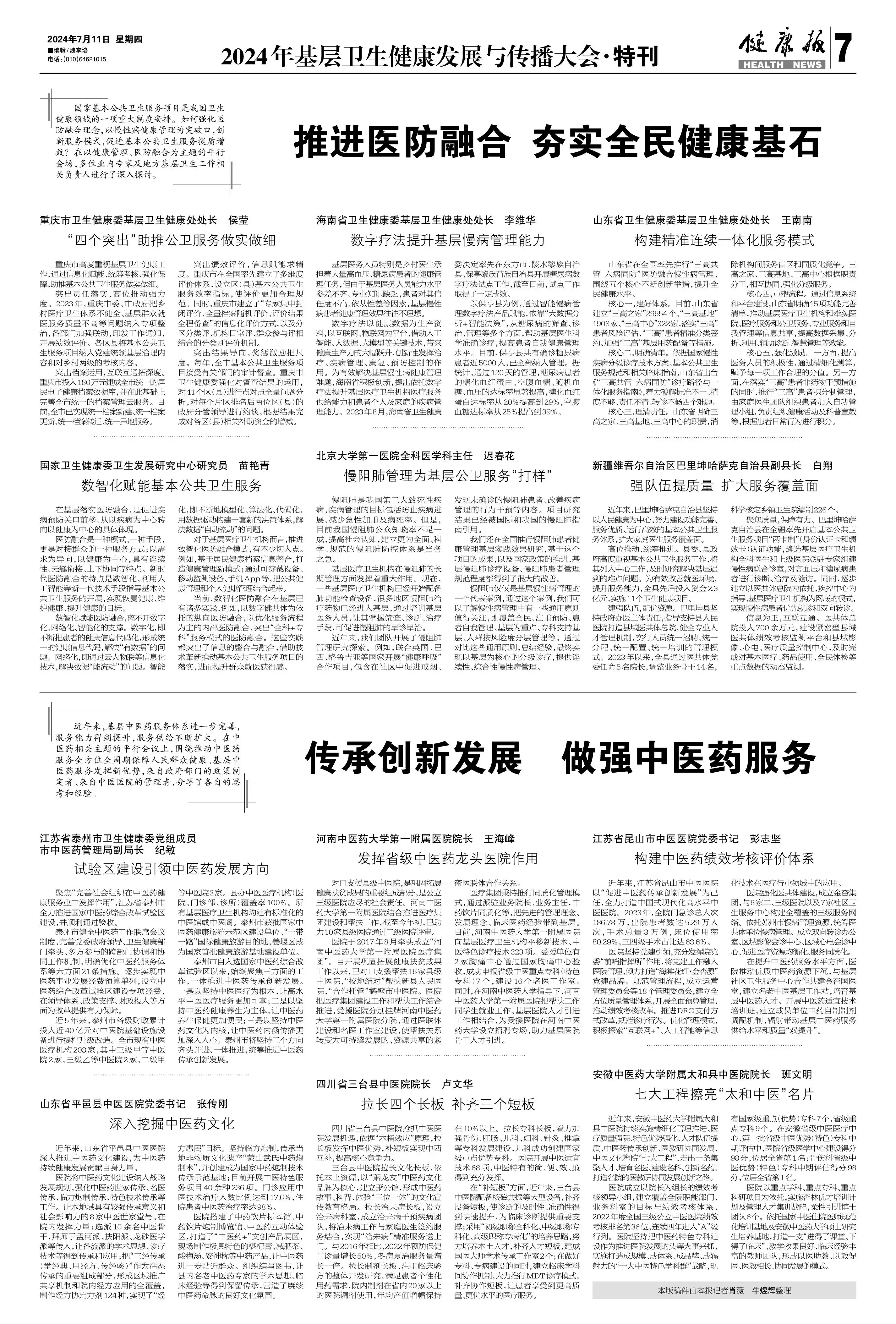 推进医防融合 夯实全民健康基石