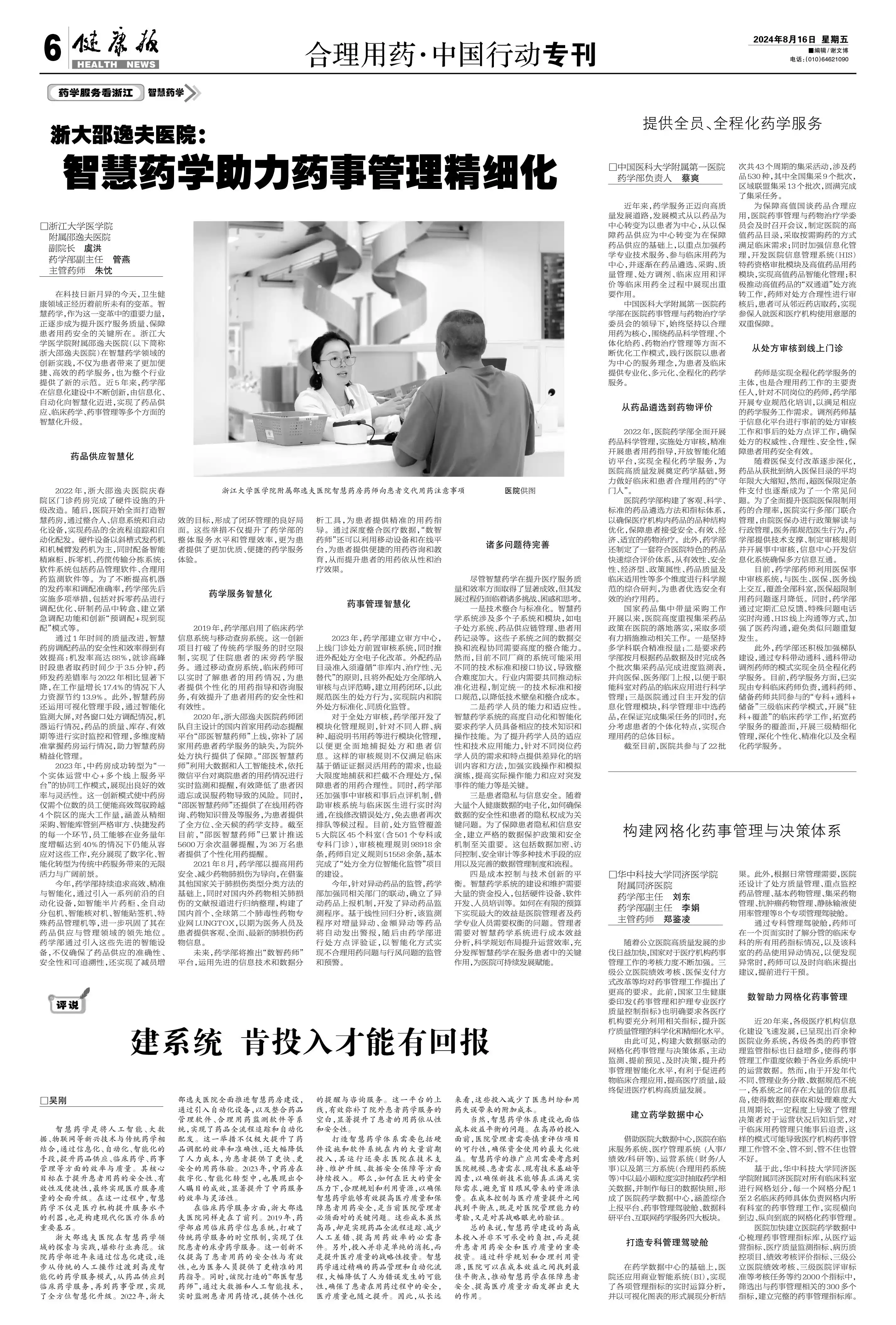 浙大邵逸夫医院:智慧药学助力药事管理精细化 (1 图)